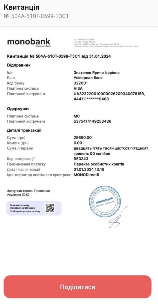 Звіт ``Дякую, що живу`` Для прозорості нашої роботи, щомісяця формуємо та викладає онлайн звіти по надходженнях.